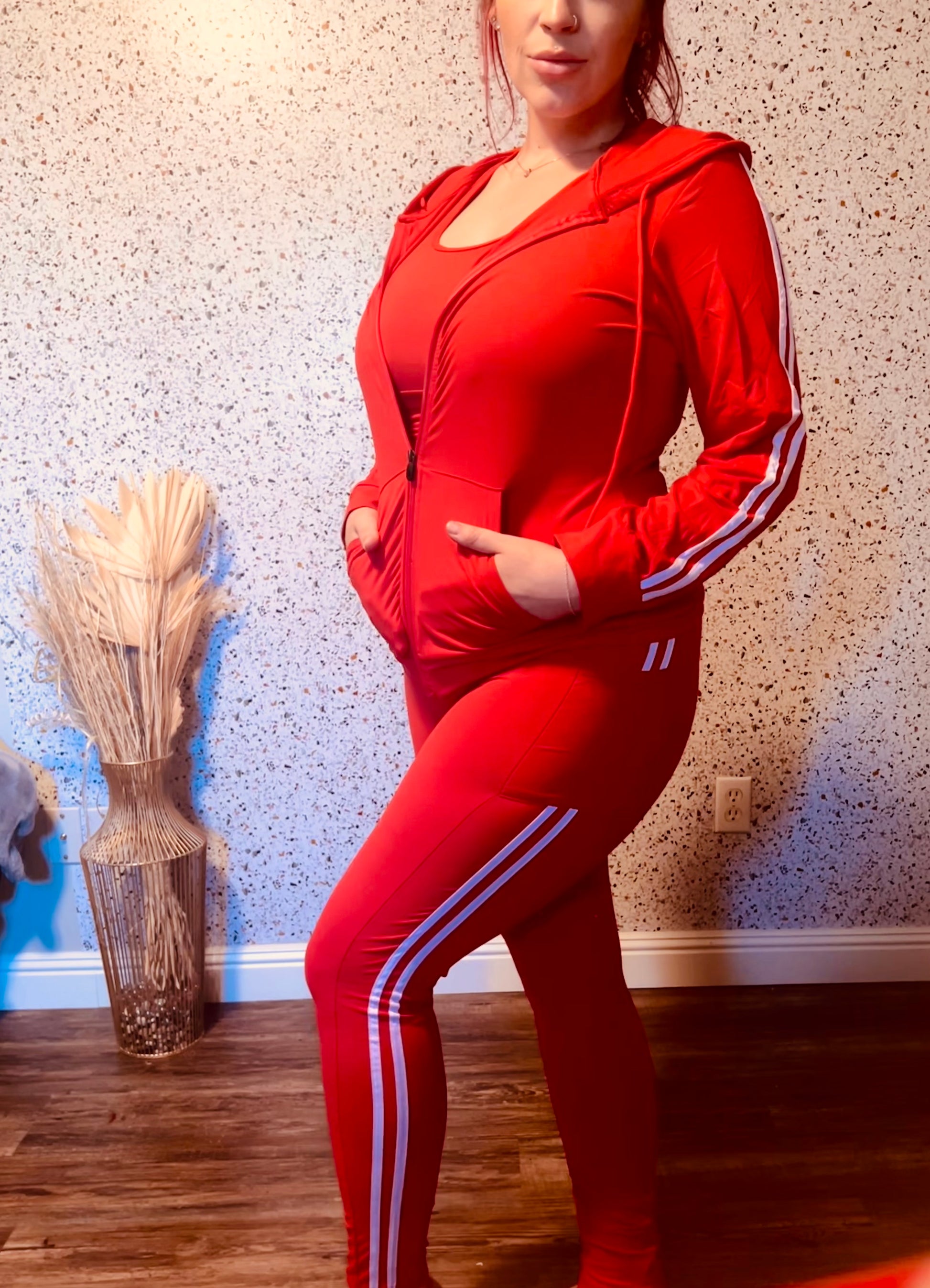 This 3-piece workout set is your perfect companion for errands, gym sessions, yoga, or lounging at home. Designed for medium to low-impact workouts, it combines style and functionality with active leggings featuring side pockets, a zip-up hoodie jacket, and a padded sports bra with removable pads for customizable comfort.